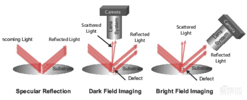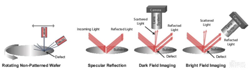 在前道工艺中,有很多类型的 检测系统,其中包括电子束检测系统、光学明场检测系统和光学暗场检测系统。 一般来说, 光学 明场检测系统用于详细检查模式缺陷。 光学 暗场检测系统可以高速检测,用于大量晶圆的缺陷检测。激光从晶圆表面反射,就像从镜子反射一样。当激光束在晶圆表面遇到粒子或其他缺陷时,缺陷会散射激光的一部分。暗场直接检测散射光,明场照明反射光束中强度的损失。电子束检测可提供材料对比度,其动态分辨率范围比光学检测系统大得多。