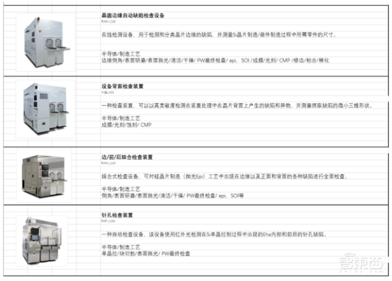 AMAT 检测设备产品包括:SEMVISION™ G7 缺陷分析系统:具备对晶圆斜边和侧边的独特成像能力;Aera4 掩膜检测系统是采用 193nm 工作波长的第四代检测工具,它以独特的方式,将真实空间成像技术与前沿的高分辨率成像技术相结合;PROVISION™ EBEAM INSPECTION 电子束检测系统: 业界第一款能够达到 1nm 分辨率的电子束检测设备,能够检测到以往 EBI(电子束检查)技术无法识别的缺陷;VERITYSEM® 5I 测量系统: 具备独一无二的内嵌三维功能,可对 1x 纳米及以下节点的逻辑和存储器件进行量产规模的测量以及诸如栅极和鳍高度的FinFET测量的超越传统测量方法。