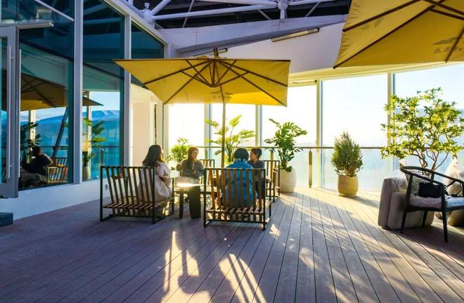 最后,我们来到整面的全景落地窗前。金义新区的城市风景,如同一幅活着的长卷,在窗外徐徐铺展。“我们将城市的蓬勃脉动,巧妙地框入这幅动态画中,”龙杨望向远方,“让读者在埋头书卷、神游八极之余,一抬眼,便能拥抱新区的无限生机,或是沉入湖山的宁静暮色。这里是捕捉书房内外双重意境的最佳观景台。”