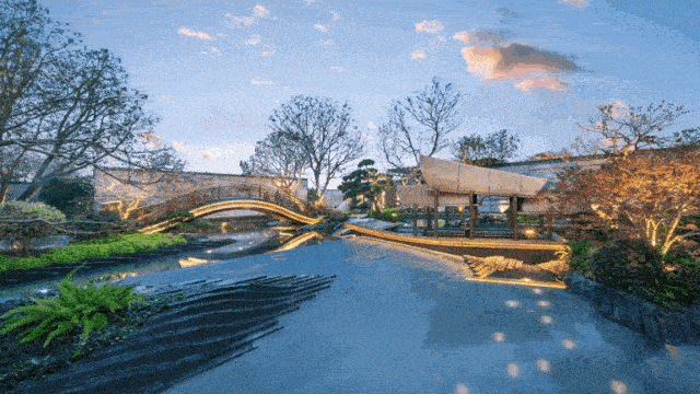 社区园林景观打破了传统的围合式江南园林打造理念,结合项目周边优越的自然景观资源,打造出入磅礴绿意的内外园境。